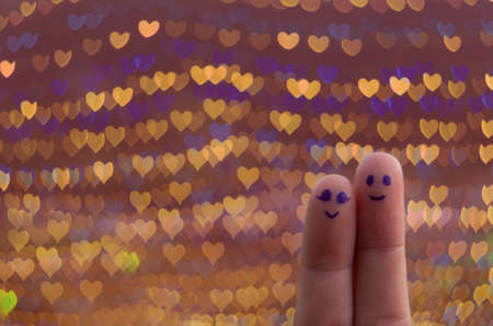 couple face painted at finger on heart bokeh background,happy couple concept, Love and valentine concept