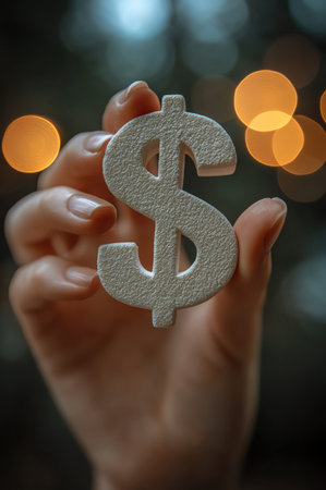 Hand holding a white dollar sign, symbolic of finance or wealth, minimalistic closeup