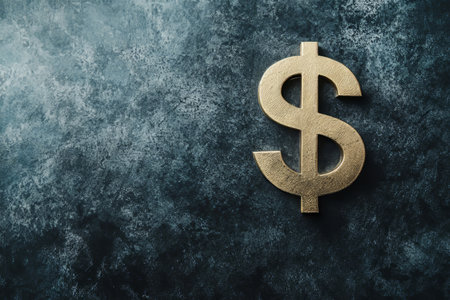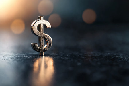 A reflective dollar symbol stands against a blurred background, capturing the essence of finance and prosperity. Soft light highlights its metallic sheen, enhancing its visual appeal.