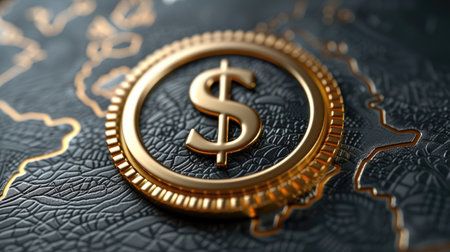 A gleaming golden dollar symbol with a luxurious shine, floating against a dark background to represent financial prosperity.