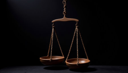 Balance scales in soft light, symbolic gravity. generated by ai