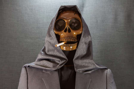 No smoking concept. Creative artwork table decoration with cigarettes. Cigarettes cause cancer and kill. still life skull and sigarette. Selective focus