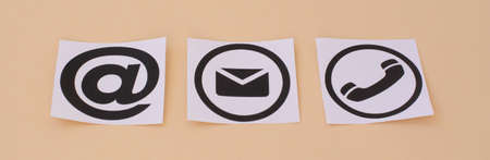 Online business communication symbols of telephone, email and mail address Contact us, e-mail marketing concept