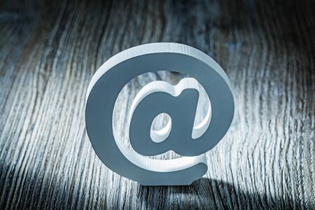 E-mail symbol on grunge wood background (Commercial At Symbol)