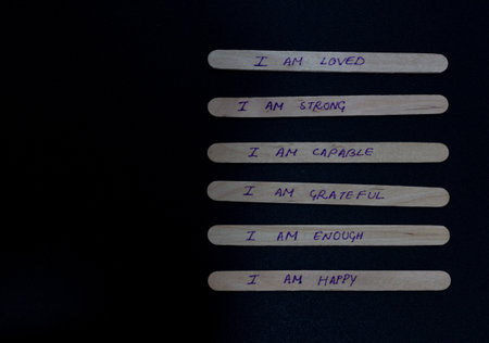 stick of ice cream with the words I am winner, strong, confident, creative, productive, successful. Motivational quotes, optimism, positive words