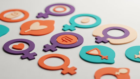 Colorful Venus symbols with hearts and abstract shapes