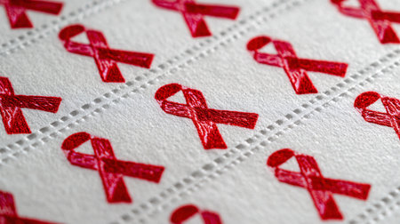 Red ribbons on a white background, close-up. A symbol of the fight against AIDS.