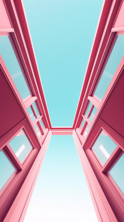 Abstract image of an office building with glass windows. Business and finance. Office architecture. The building is made of concrete and glass. Template for text. Urban geometric architecture.