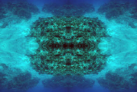 Kaleidoscopic pattern of green water and fir branches