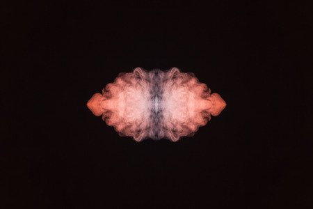 This stock photo features an abstract black background showcasing symmetrical smoke patterns and artistic fog effects, creating a mysterious atmosphere.