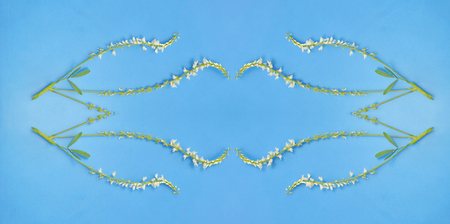 simple ornament of white flowers blue background flower arrangement. Art vintage. Spring season.