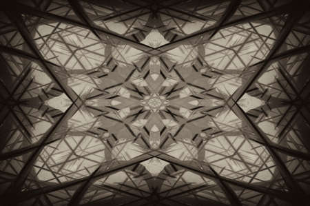 Abstract background from a repeating kaleidoscope view with gray dark and bright lines and shapes coming from the center