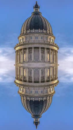 Dual mirrored dome of the Utah State Capital. Geometric kaleidoscope pattern on mirrored axis of symmetry reflection. Colorful shapes as a wallpaper for advertising background or backdrop.