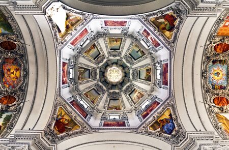The world famous Salzburg Cathedral Salzburger Dom. Symmetrical view of dome.