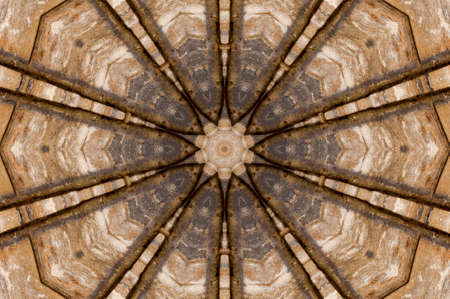 Interesting shapes made from a part of the Capital. Geometric kaleidoscope pattern on mirrored axis of symmetry reflection. Colorful shapes as a wallpaper for advertising background or backdrop.