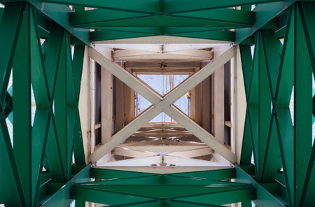 Green truss structure perspective background.