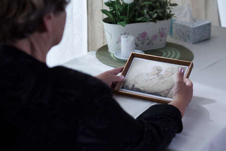 One day we will meet again. Cropped shot an elderly woman holding an old black and white photograph of a man.