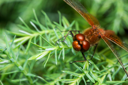 Macro shots, showing of eyes dragonfly and wings detail. Beautiful dragonfly in the nature habitat.