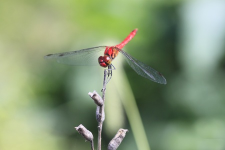 Red dragonfly perched on a leaf Photo taken on 11 April 2014