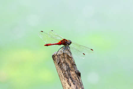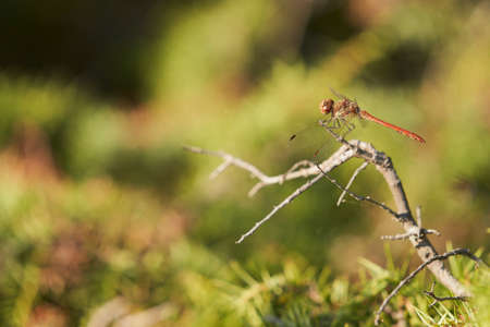 Ruddy darter Sympetrum sanguineum on top of a branch