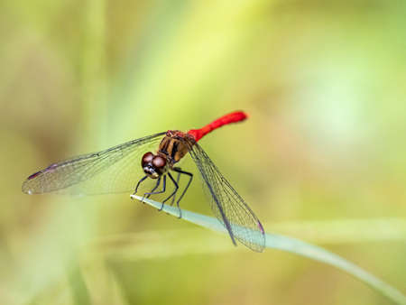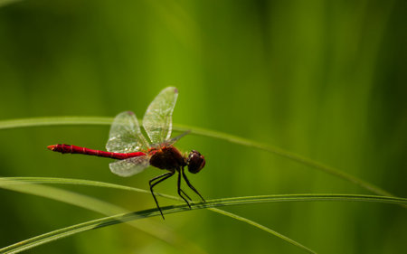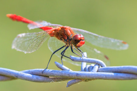 Macro of a beautiful red dragonfly.