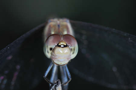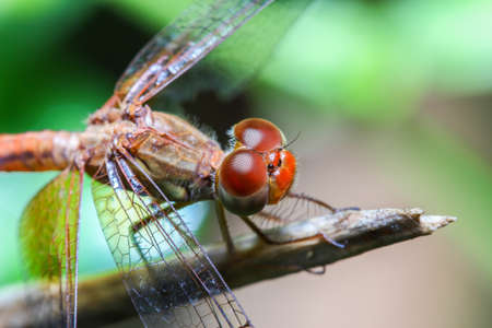 Macro shots, showing of eyes dragonfly and wings detail. Beautiful dragonfly in the nature habitat.