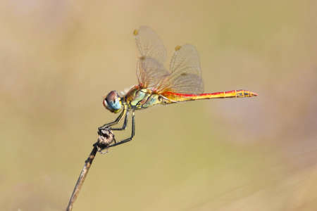 Dragonfly Red veined Darter Sympetrum fonscolombei perched on a twig