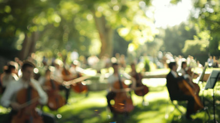 Defocused snapshot of an orchestra playing in a park capturing the essence of an outdoor symphony