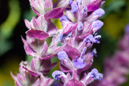 Close up of blue or violet sage flower, Salvia officinalis, macro
