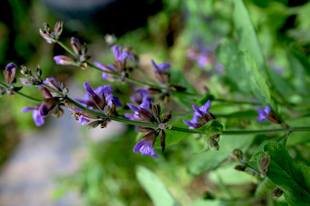 Salvia officinalis purple evergreen medical plant for herbal tea.