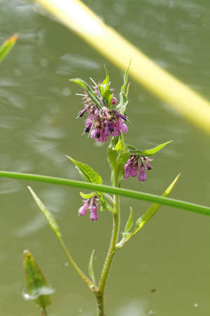 In the meadow, among wild herbs the comfrey Symphytum officinale is blooming.