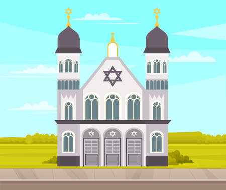 Synagogue for Jews isolated on white background. Temple vector classic cathedral illustration. Religious building in style of ancient architecture, traditional prayer house