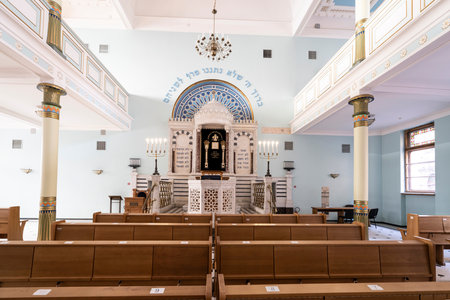 Generative AI : TBILISI GEORGIA JULY 15 Interior of the Tbilisi Great Synagogue on July 15 2013 in Tbilisi Georgia The building was built from 1895 to 1903 in an eclectic style by