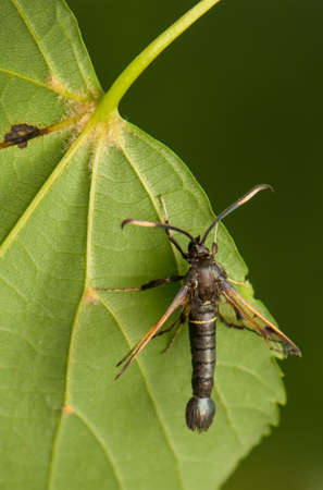 The macro of common scorpionfly (Panorpa communis) on leaf