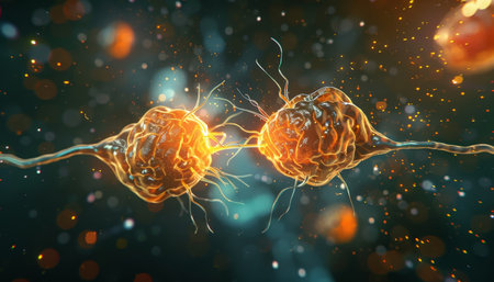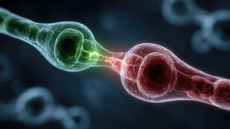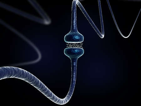 3d illustration showing two nerve cells interacting through a synapse connection