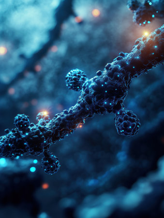 a microscopic view of a vibrant cellular world with DNA strands intertwining