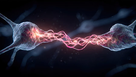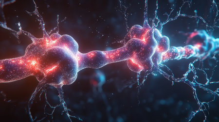 A vibrant pulse of energy bridges the gap between two neurons, illustrating the precise moment of synaptic transmission. This dynamic visualization captures the essence of thought, learning, and the complex communication within a biological or artificial neural network, symbolizing innovation and the flow of information.