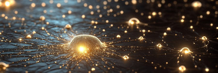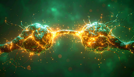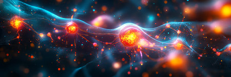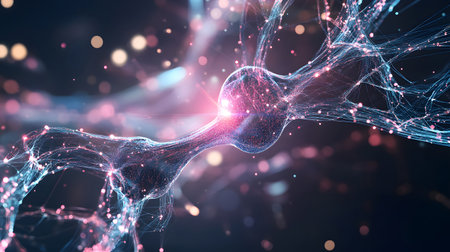 Abstract visualization of a neural network with glowing synapses and interconnected nodes representation.