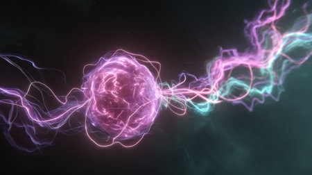A mesmerizing digital artwork depicting an ethereal energy sphere surrounded by colorful plasma and dynamic light trails, conveying a sense of cosmic beauty and scientific wonder.