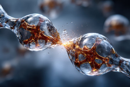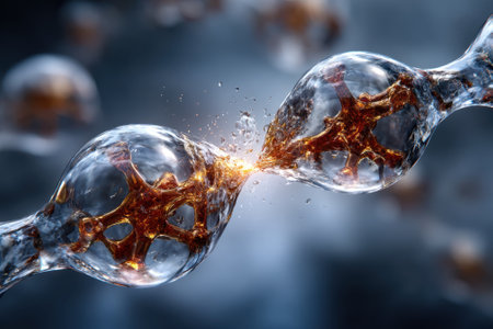 Glowing molecular structures demonstrate energy release, showcasing interaction and transformation vividly.