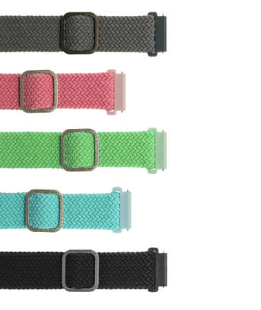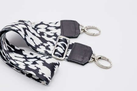 Shoulder strap. nylon fastening belt, strap isolated on white background.Colored polyester belts, backpacks. Belt straps for bags.black and white collection of women accessories