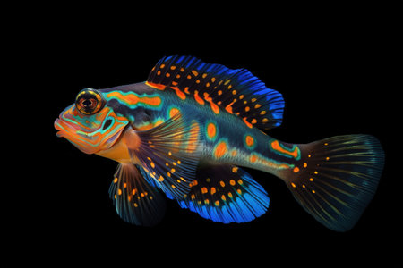 Close-Up of Mandarinfish showcasing Vibrant Colors and Patterns. Concept Underwater Photography, Marine Life, Brightly-Colored Fish, Aquatic Creatures, Nature Close-Ups