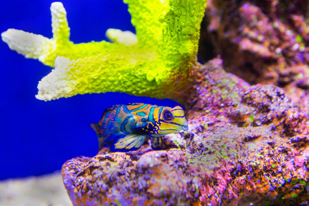 Mandarin goby is also called the Mandarin dragnet Synchiropus splandidus in a reef aquarium