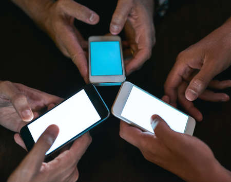Get your word out there to the world. Closeup shot of an unrecognizable group of businesspeople using their cellphones in synchronicity.