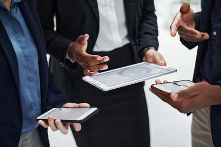 Making things happen in the smart age. Cropped shot of a group of colleagues using their smart phones in synchronicity.