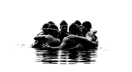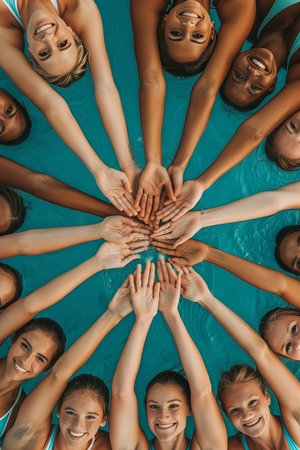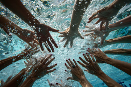 Olympic synchronized swimmers perfectly aligned hands display exceptional coordination