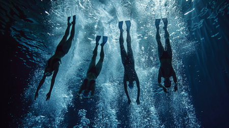 Underwater shot of synchronised swimmers
