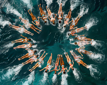 Synchronised swimmers form a circle