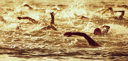 Unidentified triathlon swimmers during competition