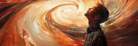 A person trapped in a never-ending cycle of thoughts, represented by swirling patterns and colors. Generative AI